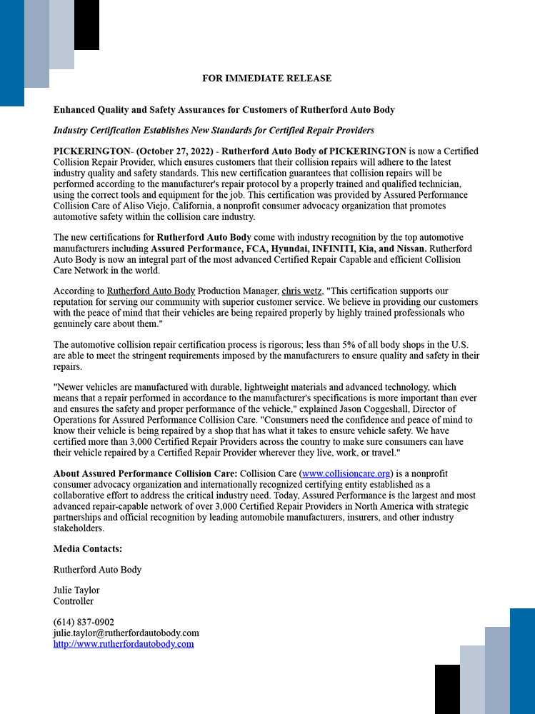 Rutherford Auto Body has been in business since 1947, family owned and operated.